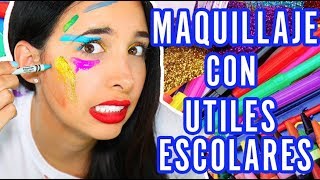 RETO: MAQUILLAJE CON UTILES ESCOLARES | Mariale
